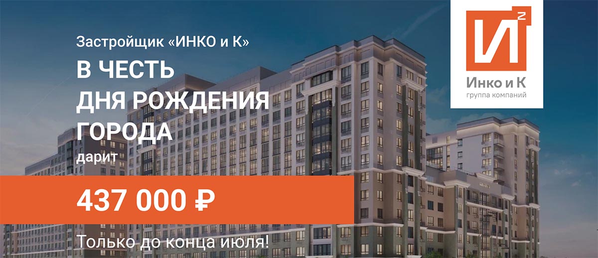 Застройщик «Инко и К» в честь Дня рождения города дарит 437 тысяч рублей. Только до конца июля!