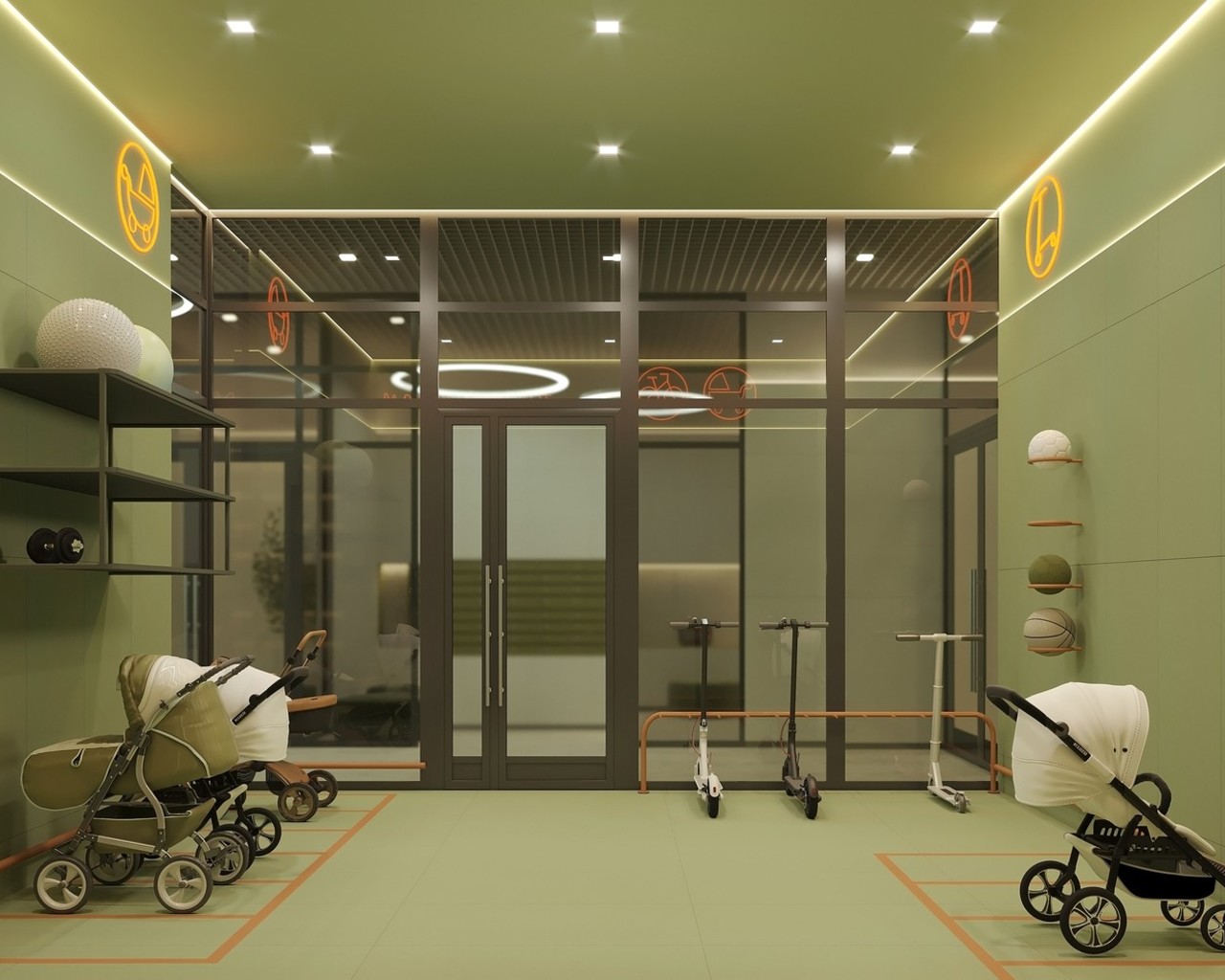 Холлы продуманы до мелочей: колясочные, почтовые комнаты, зона ожидания, лапомойки для собак и санузлы.